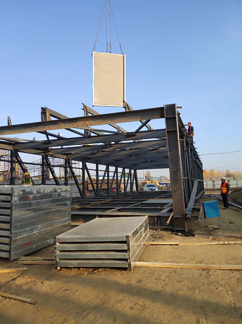 鋼骨架輕型板適用于輸煤棧橋、公共民用等建筑圍護(hù)屋面、樓面、墻面.鋼骨架輕型板由輕型鋼骨架、冷拔鋼絲網(wǎng)、改性水泥珍珠巖復(fù)合芯材(專有技術(shù))、復(fù)合抗?jié)B耐磨涂層(專有技術(shù))組成.鋼骨架輕型板集輕質(zhì)、承重、節(jié)能、防火、隔聲、泄爆、抗震等功能于一體,既保持了傳統(tǒng)鋼筋混凝土構(gòu)件安全度高、使用壽命長的優(yōu)點(diǎn),又滿足了現(xiàn)代建筑對輕質(zhì)、節(jié)能、環(huán)保的要求。